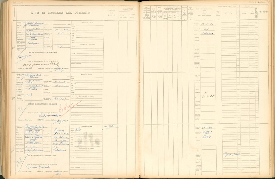 Entrance registration number to the Coroneo Prison – State Archives of Trieste