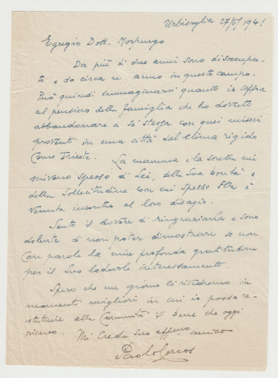 Letters written to Morpurgo by internees in fascist camps – Historical Archive of the Jewish Community of Trieste