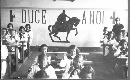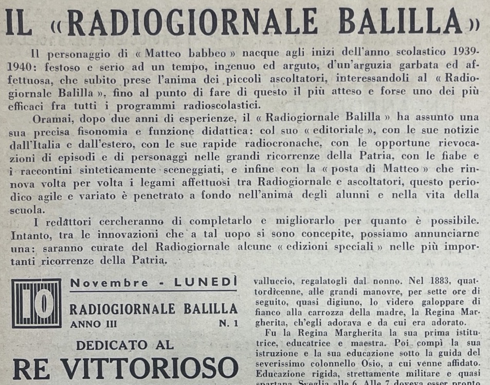 Beginning in the second half of the 1920s, Fascism became a totalitarian dictatorship: a political system in which all power was controlled by a single party and leader, Benito Mussolini. He dominated society through centralized control of politics, the economy, and culture. He imposed a single ideology to guide widespread consensus. The Fascist regime made the most of the “new” means of mass communication, allowing the party’s ideals to spread rapidly. The state took complete control of the means of propaganda: cinema, radio, and newspapers, which were subject to strict censorship. Radio was the primary propaganda tool and became the official voice of the state: speeches by the Duce, official marches, and discussions on racism were broadcast.