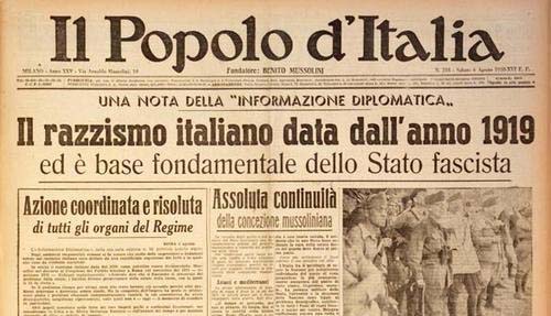 “Un gruppo di studiosi fascisti docenti nelle Università italiane sotto l’egida del Ministero della Cultura Popolare ha fissato nei seguenti termini quella che è la posizione del Fascismo nei confronti dei problemi della razza: