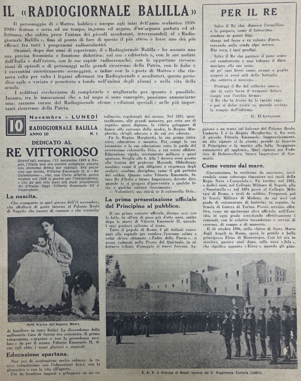 This is a fascist journal about radio in school. To learn more, browse through it and look for the article Il Radiogiornale Balilla and frame it.
