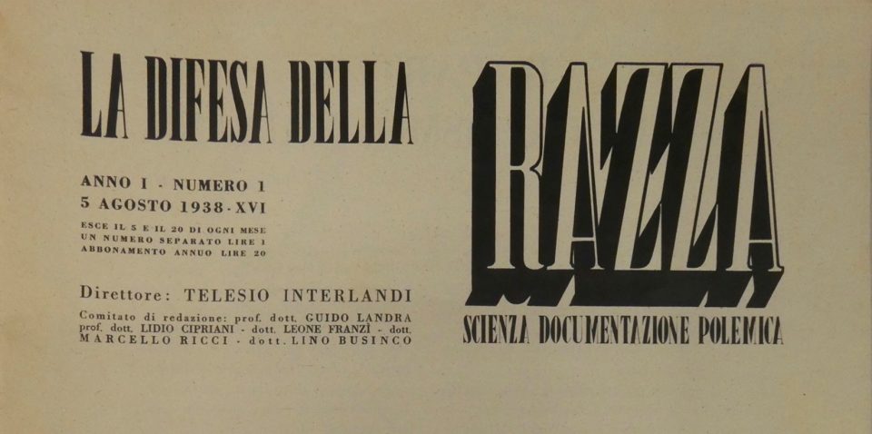 The official theoretical document of Fascism, published under the title Il fascismo e i problemi della razza in “Il Giornale d’Italia” of July 14, 1938, and also known by the misleadingly reductive title Manifesto degli scienziati razzisti, anticipated by a few months the promulgation of Fascist anti-Jewish legislation in September-October 1938. It was signed by some of Italy’s leading scientists and academics.