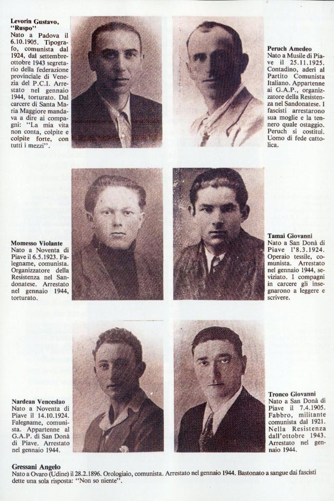 On the night of July 27, the Head of the Province Pietro Cosmin convened the Extraordinary War Tribunal and it was agreed to sentence 13 political prisoners, imprisoned in Santa Maria Maggiore, to death. The prisoners mostly came from the area of San Donà: in this way it was intended to teach a lesson to an area particularly active in the Resistance (the city of San Donà would also be endowed with the silver medal for military valor for the Resistance).